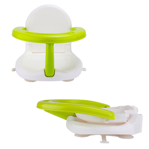 A baby bath seat is a type of chair, usually made of hard plastic, that sits partially submerged in the bathtub water.